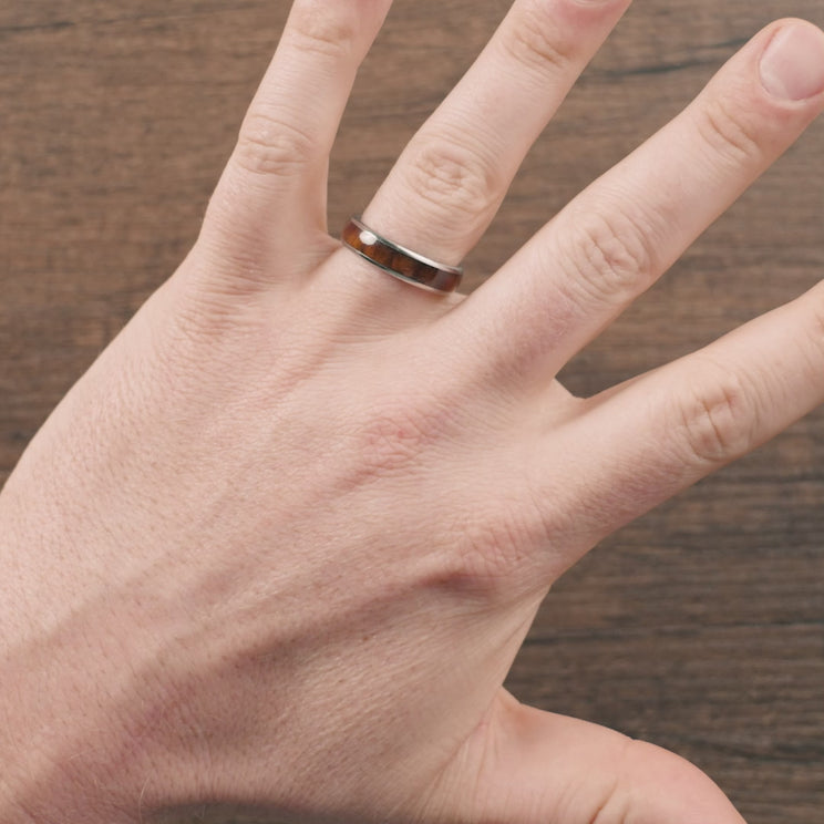 Tungsten is smooth, sleek, scratch resistant, and one of the toughest materials found in the natural world. Chestnut wood adds an organic, grounded charm, and turns this ring into a unique statement piece.