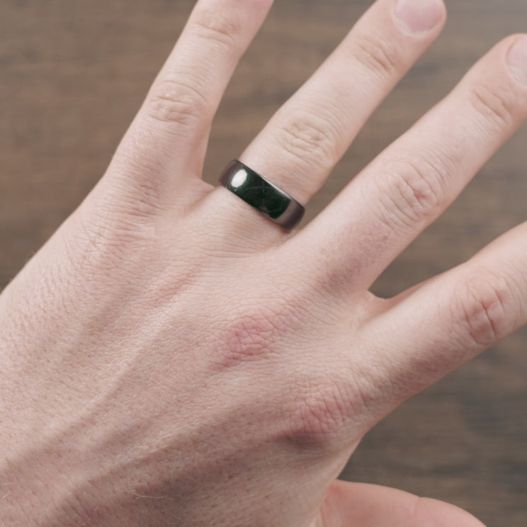 Forged from the highest quality tungsten carbide, renowned for its unmatched durability and resistance to scratches, this ring is built to withstand the test of time. The sleek brushed black finish adds a touch of refinement, exuding an aura of understated luxury that captivates the eye.