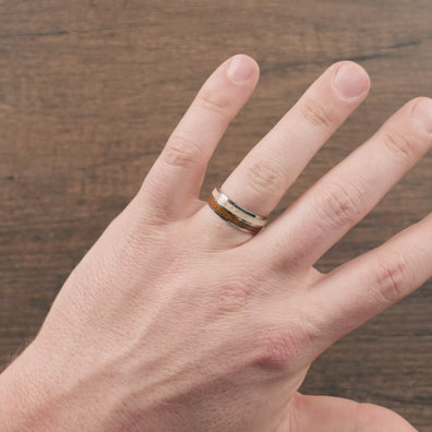 **Due to the natural antler used in our designs, each ring's antler accent is 100% unique in color. Some antler accents are pure white, some contain more darker flecks, and others may have an even mix of the two. If you have a strong preference on color, please contact us prior to ordering and we will let you know what we have available in your size.
