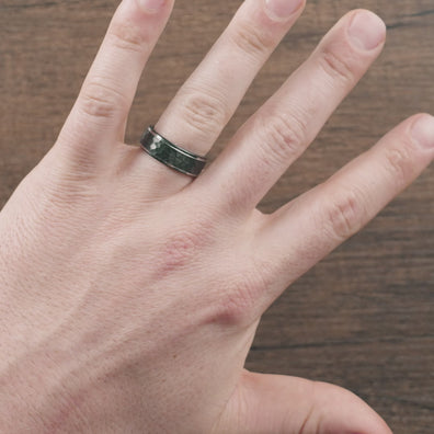 The raised hammered inlay and polished silver accents are evidence of care, skill and craftsmanship – each of these rings is produced in small batches to ensure they are of the highest quality.