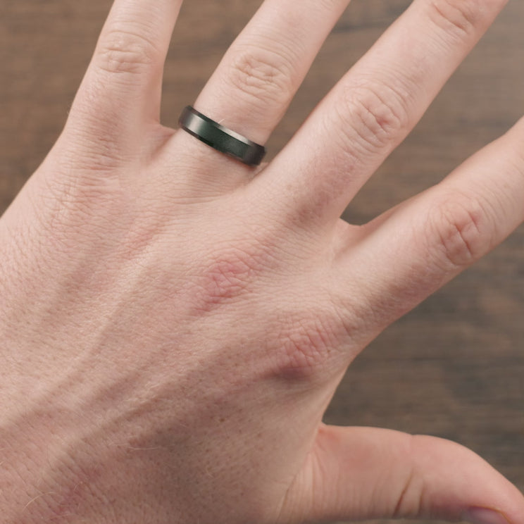 Introducing the epitome of modern sophistication and timeless elegance: the Brushed Black Tungsten Wedding Band with Beveled Edges from Alpine Rings. Crafted with meticulous attention to detail, this ring is not just an accessory but a symbol of enduring commitment and unwavering style.