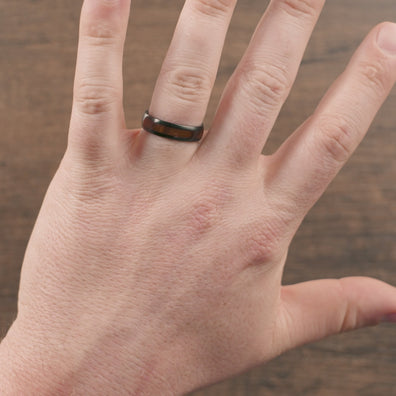 Jewelry made with exotic hardwood has become increasingly popular as people are more aware of the importance of nature and natural materials. This men's ring was small batch crafted with that idea in mind, combining durability with organic beauty.